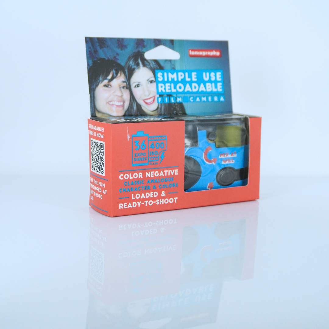 這款 Simple Use 即開即用菲林相機預載了 Lomography 最受歡迎的 ISO 400 彩色負片,為成像帶來鮮豔色彩外,還擁有閃光燈功能、顏色濾片,更可重新上卷重覆使用,是一部性價比和可玩性極高的菲林相機!